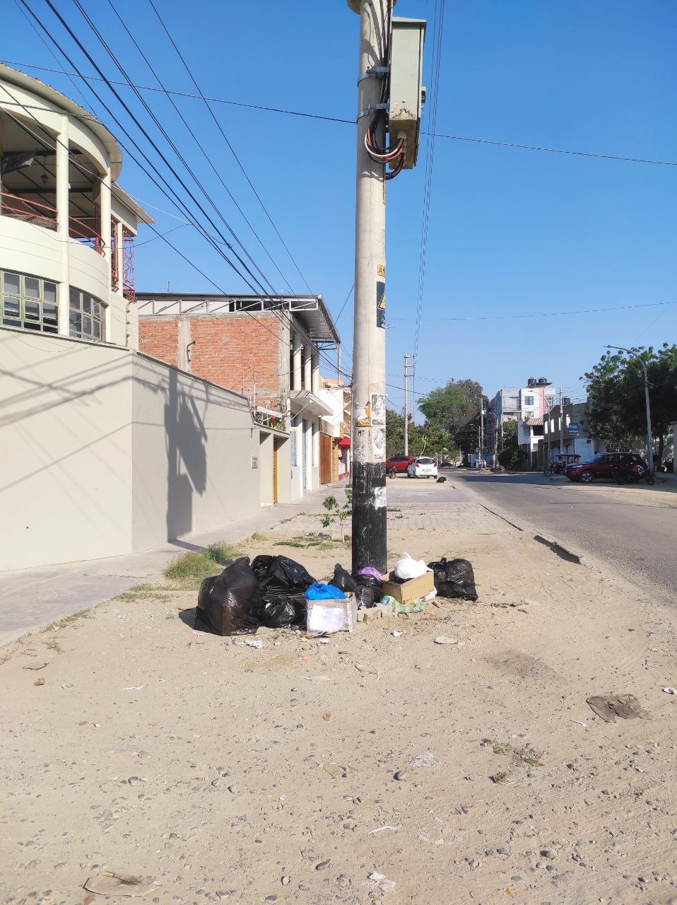 Cerca al Colegio de Ingenieros de Piura se puede observar gran cantidad de bolsas de basura acumuladas en un lado de las calles, cómo también en alrededores. Un mototaxista de la zona comenta que las personas al ver que el carro municipal de la basura no pasa como debe ser, bota sus residuos a la calle, haciendo que malogre la estética de la zona.