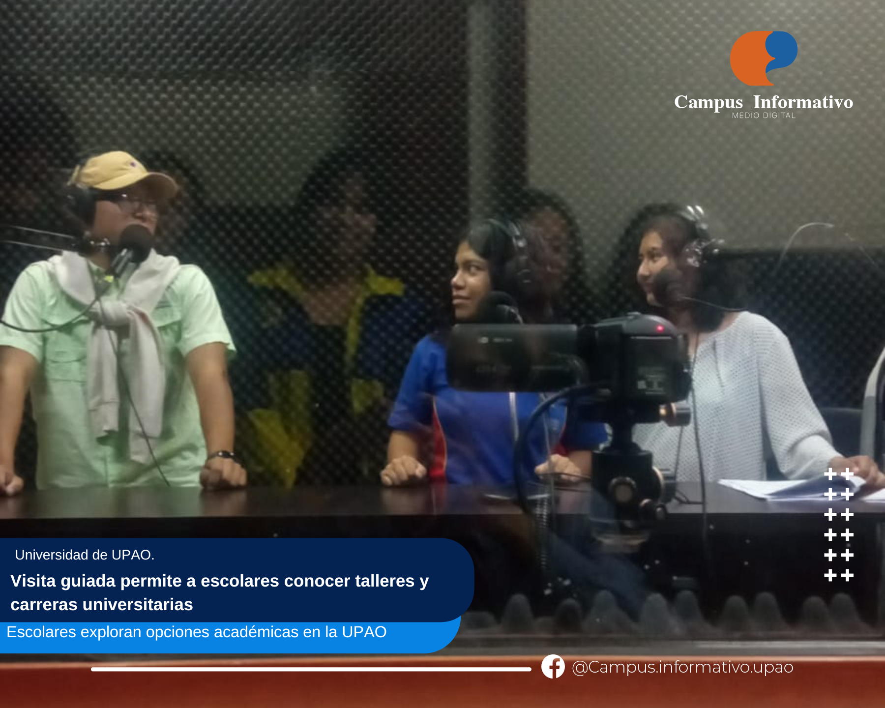 Piura, 19 de noviembre de 2024. Ayer, a las 5:00 p.m., un grupo de escolares visitó la Universidad Privada Antenor Orrego (UPAO) como parte de una jornada para descubrir más sobre las carreras profesionales y los talleres que la institución ofrece. Durante el recorrido, los estudiantes tuvieron la oportunidad de conocer los laboratorios, talleres y áreas prácticas que forman parte de diversas facultades. Entre ellos, destacó la visita a la cabina de radio ubicada en el pabellón B, aula 3000, donde los jóvenes vivieron la experiencia de estar frente al micrófono, aprendiendo sobre la preparación de programas y la dinámica de una transmisión en vivo.